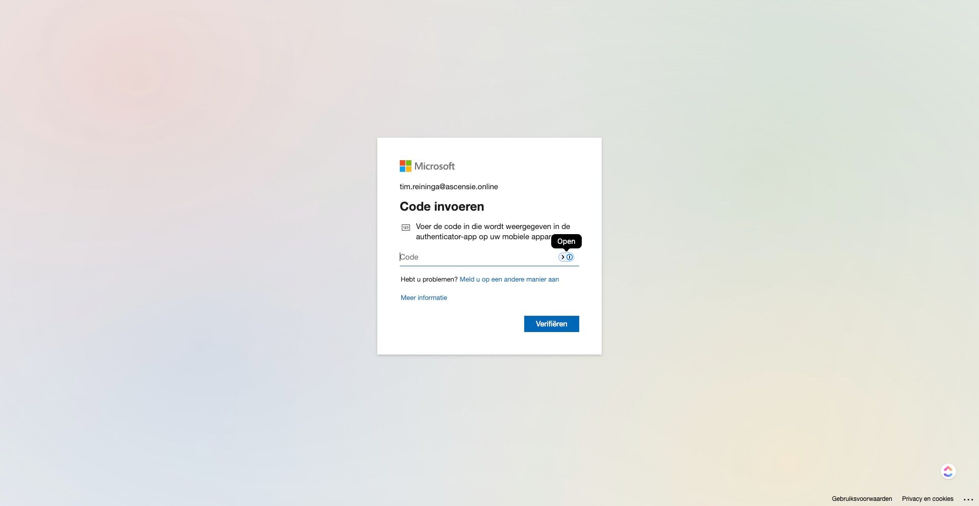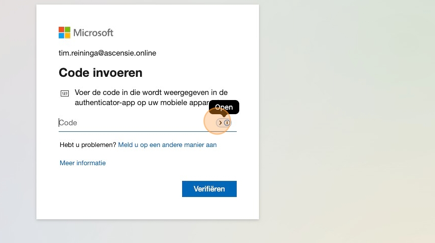 6. Voer je 2FA code in of bevestig je aanmelding via de Microsoft Authenticator app.